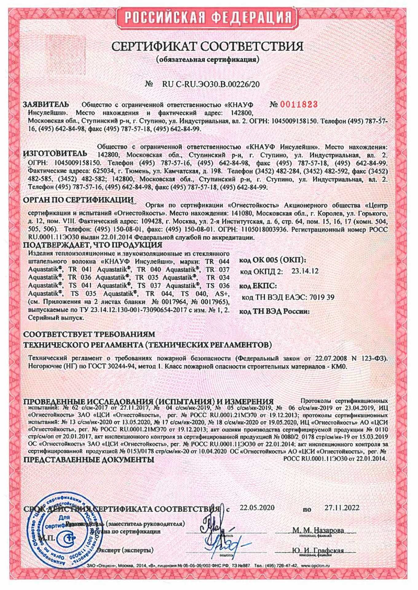 | Плотность, кг/м3 | 22 |